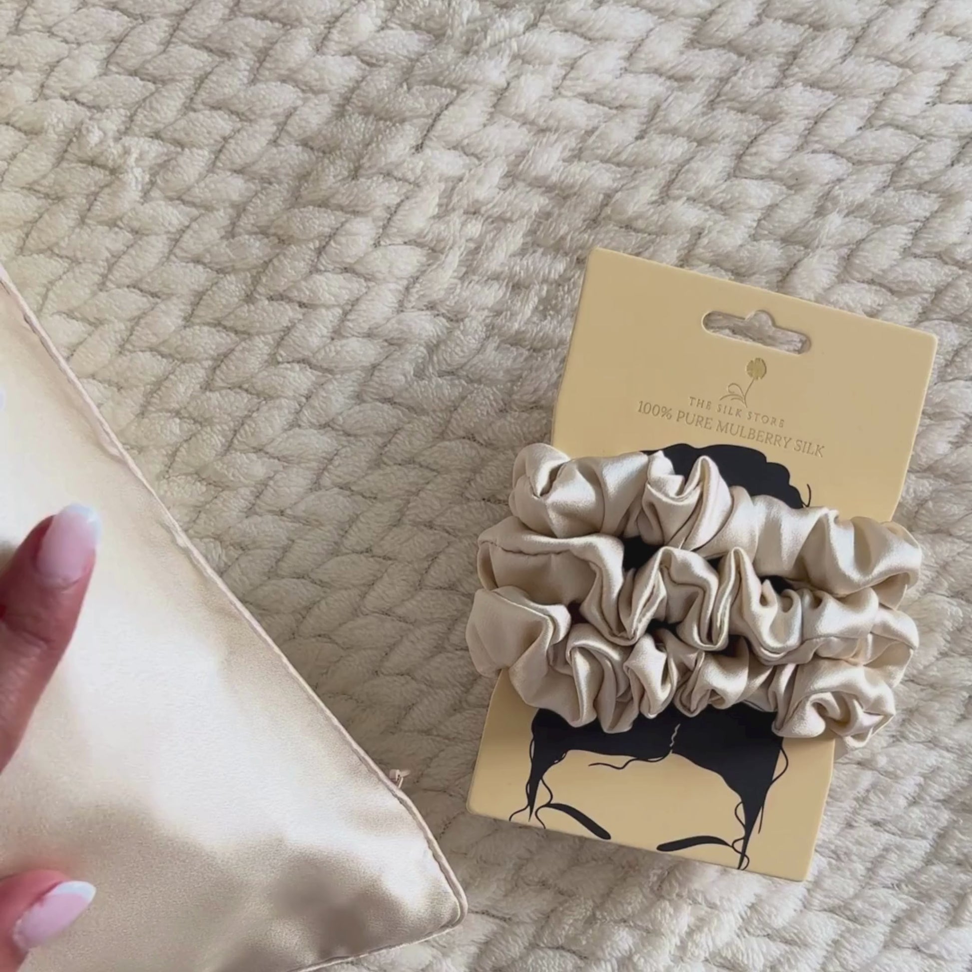 Champagne Silk Pillowcase & 3x Silk Scrunchies